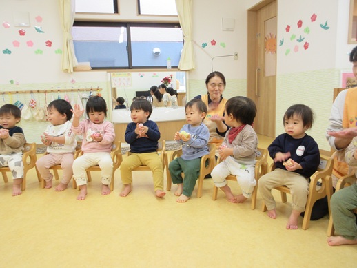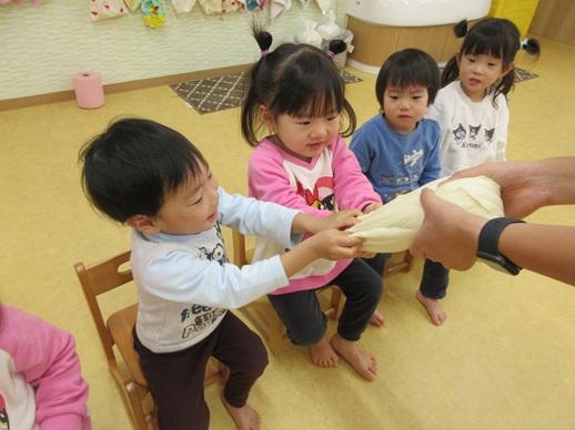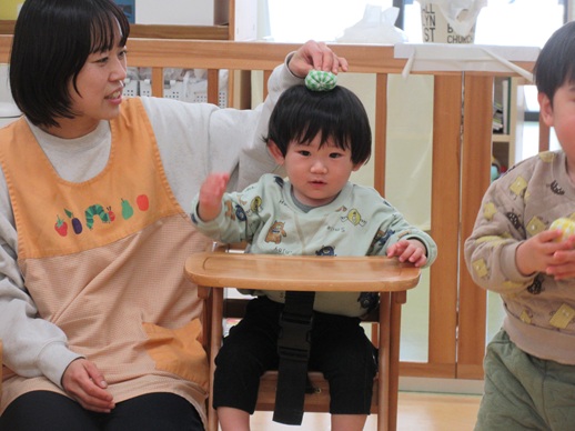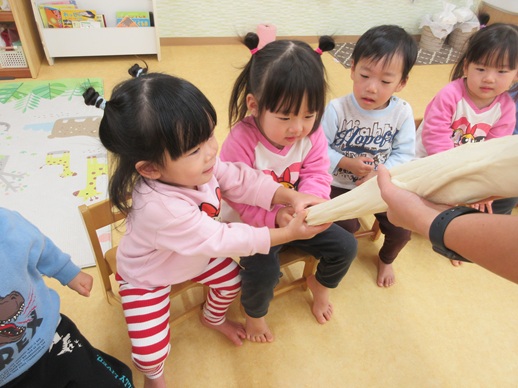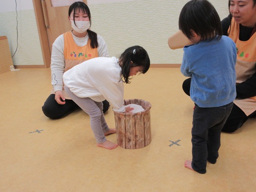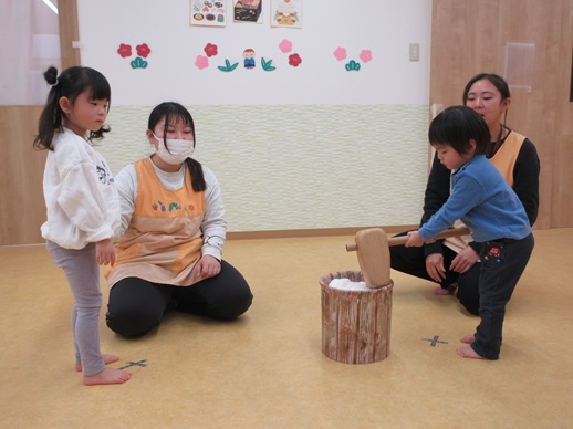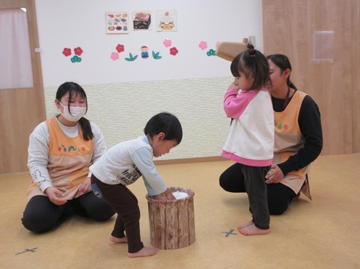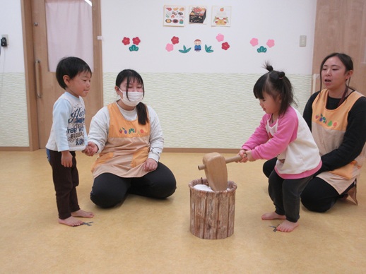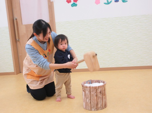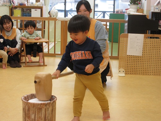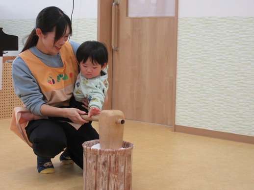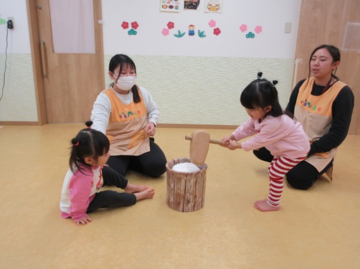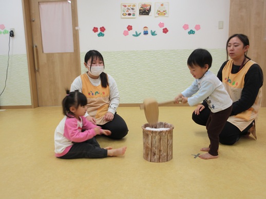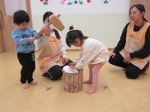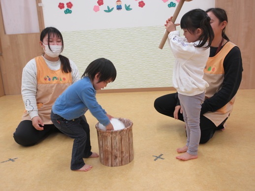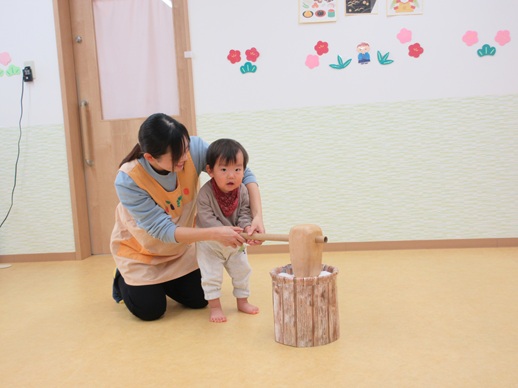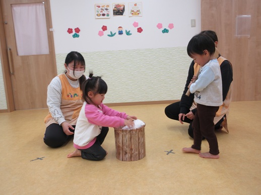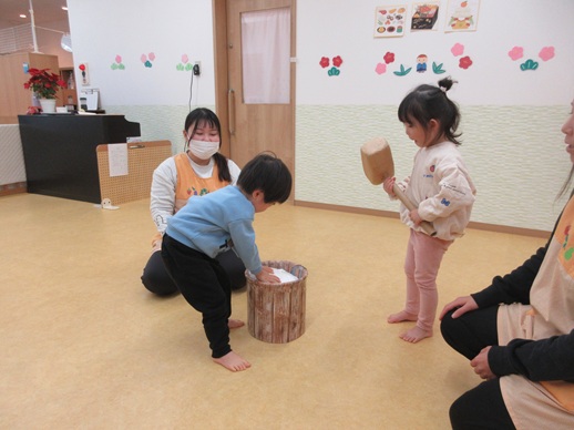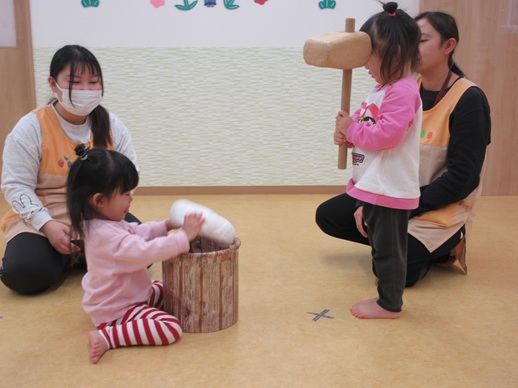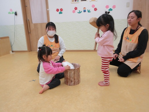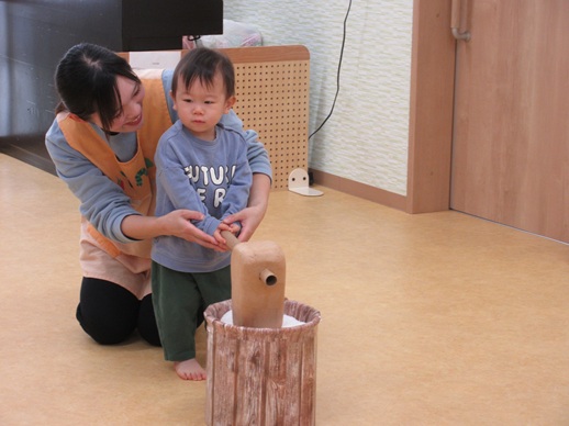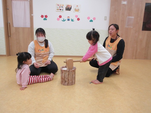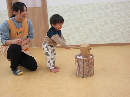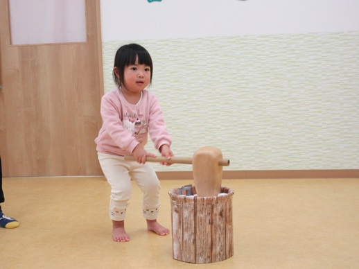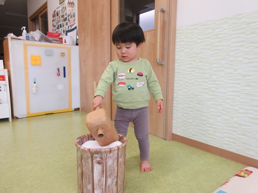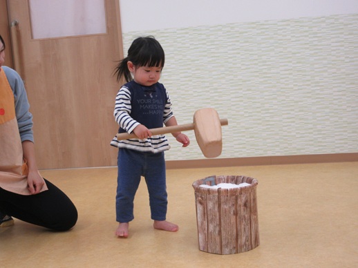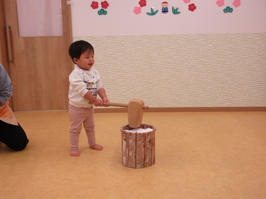 保:「今日はおもちつきごっこだよ。」