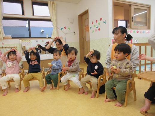 くま組さんは、2人1組で合の手役が