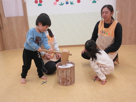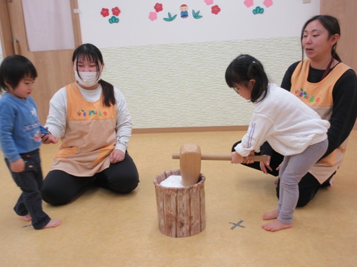 いよいよぺったんこ!のおもちつき!