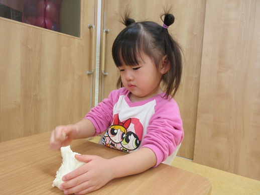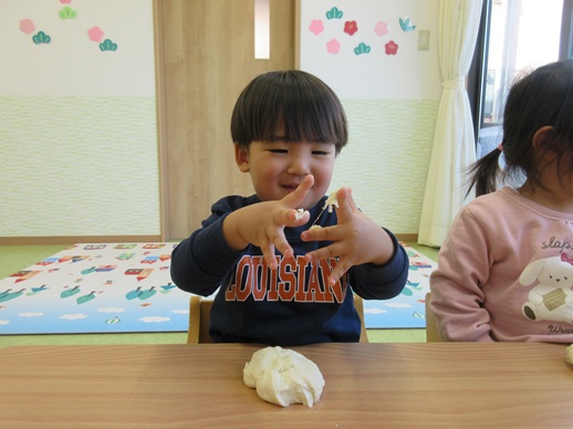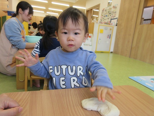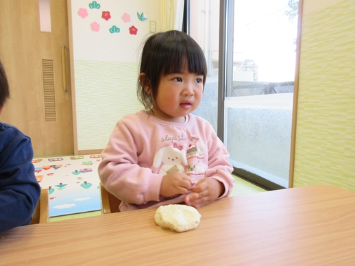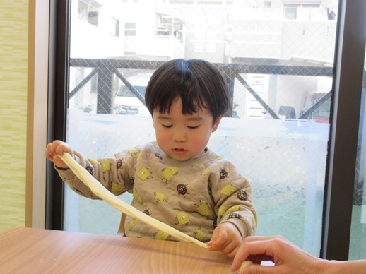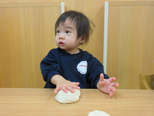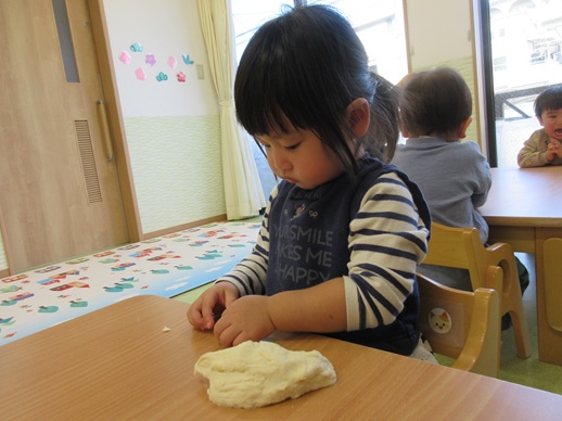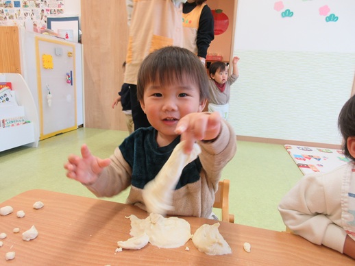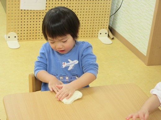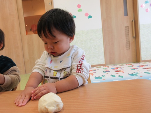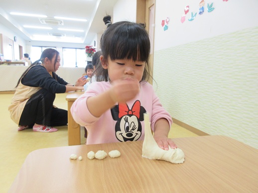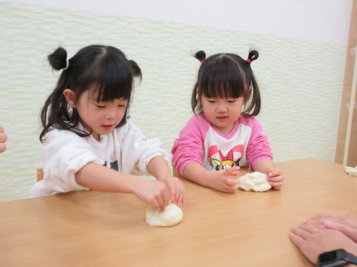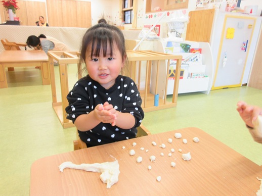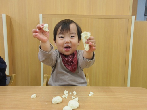 小麦粉粘土を丸めたり、グニュッと