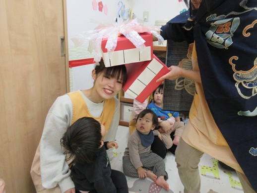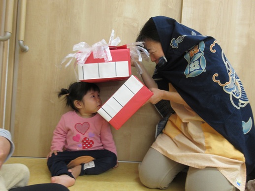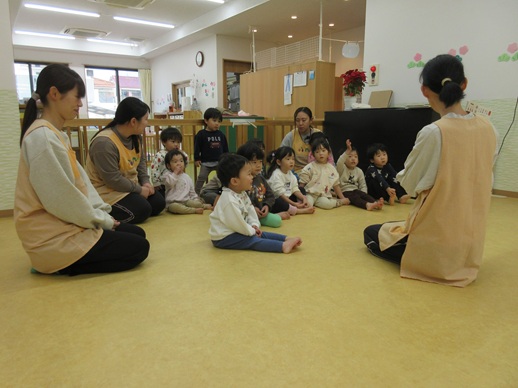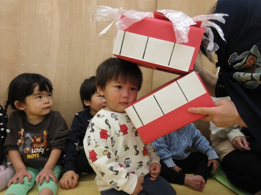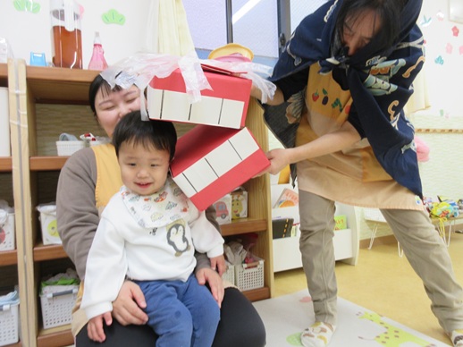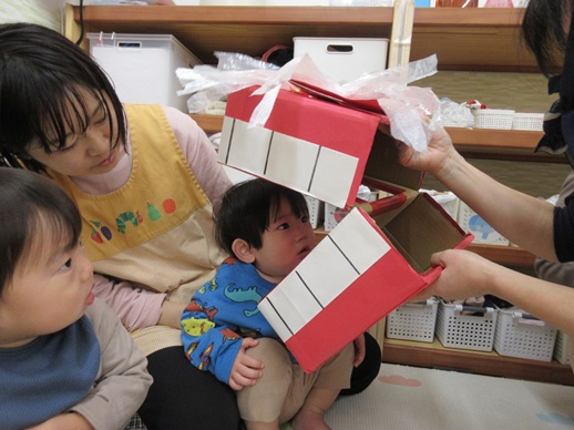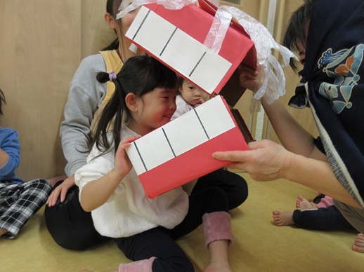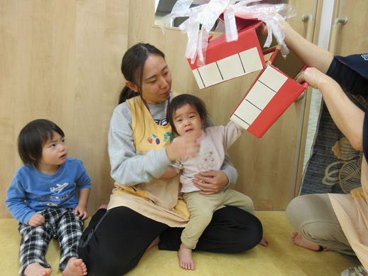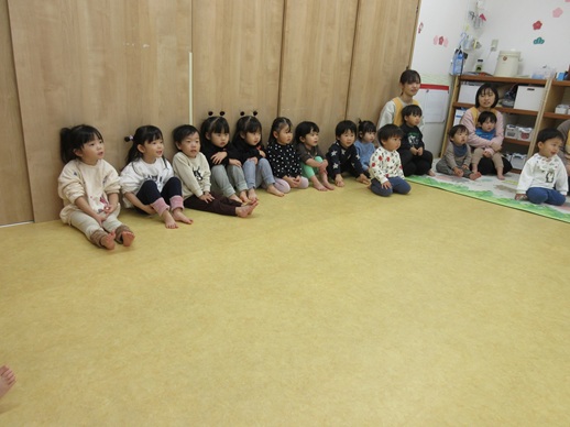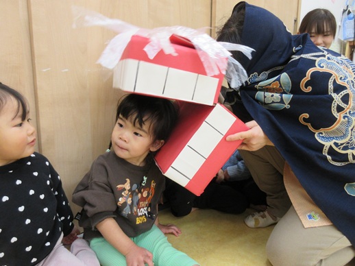 うさぎ組さんは、怖くて口を尖らせる子や、にっこにこで笑う子、先生にしがみつく子や顔を覆い隠す子もいましたよ♪