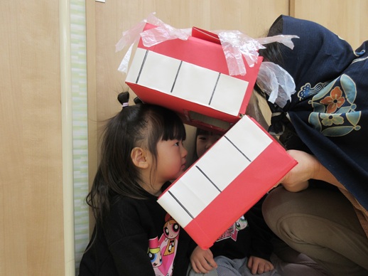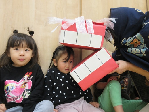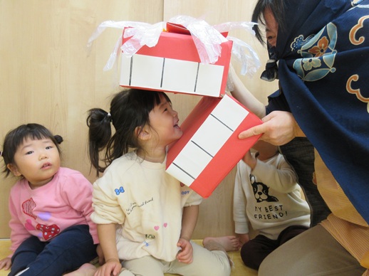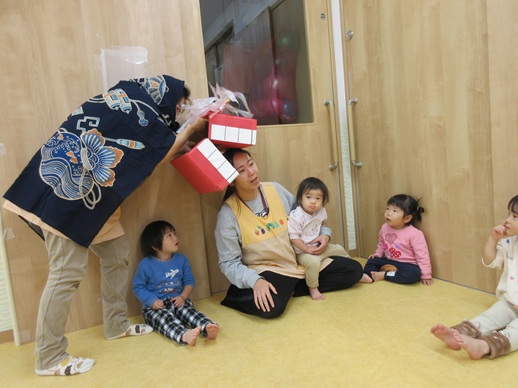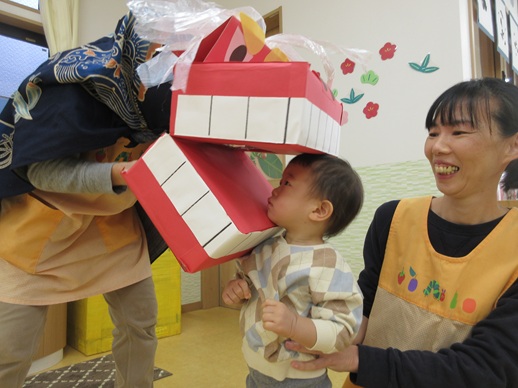 ひよこ組さんは、怖がる子や、ししまいの口の中をじーっと覗いている子もいましたよ♪