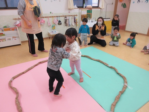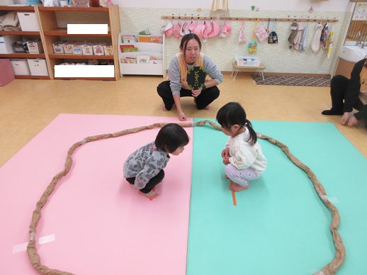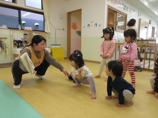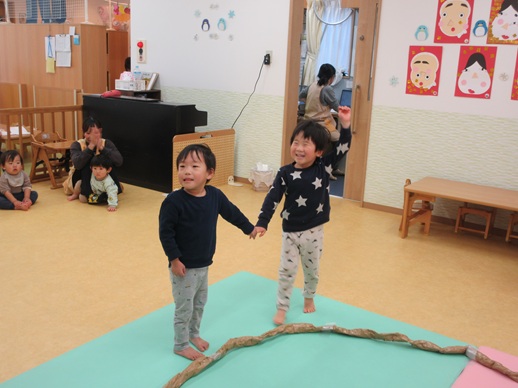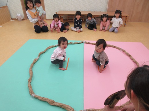取り組みをじっと見ていたひよこ組さんもチャレンジ!