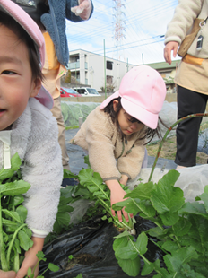 くま組さんは、公園遊び後、きらきら畑で