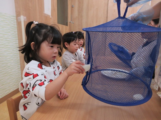 綺麗に拭けたら、網の中に入れましたよ♪