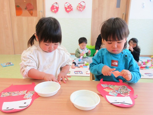 うさぎ組さんの製作は赤いだるま♪大好きな「だるまさんが…]の
