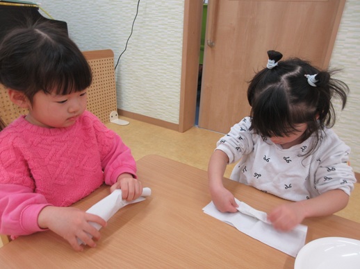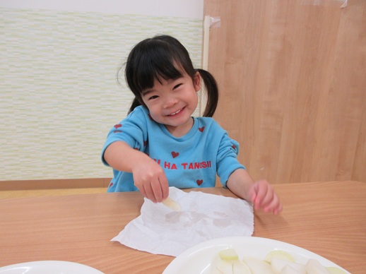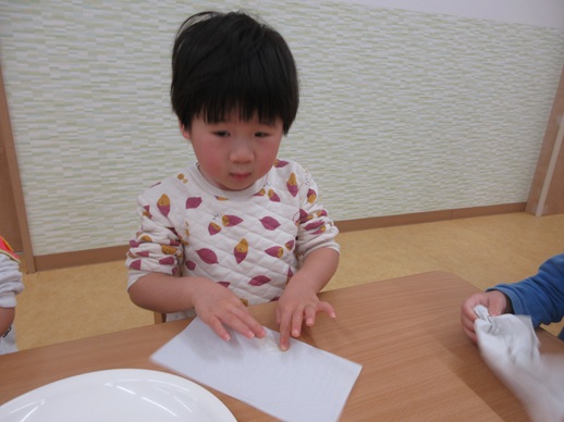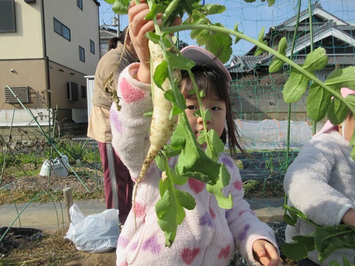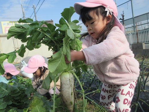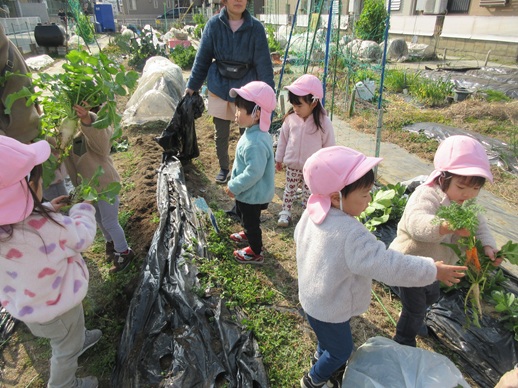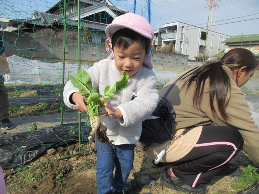 ☆2026年1月のきらきらっこ☆⑭くま組🐻切り干し大根第2弾! ホームブログ 2026.01.28 切り干し大根第2弾! 1月27日(火)きらきら畑の大根と小さな人参を収穫! うんとこしょ!はお手のもの!葉をしっかり持って 力を入れて スッポーン!大小さまざまな大根が抜けました! 帰園して、切り干し作り大2弾スタート! 前回よりも、スピードアップ!カラカラに乾燥したら 美味しく煮てもらおうね!
