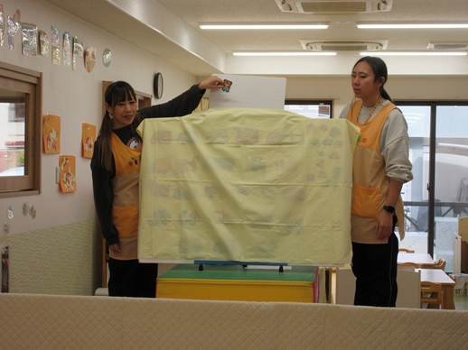 布のかかった大きなパネルシアターから