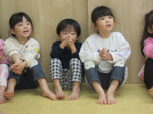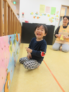 ん?なんだっけ?の表情で、保育士を見ていました。