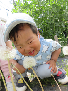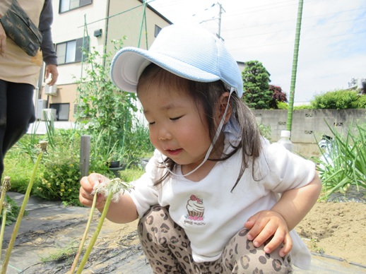 かがんでふ~っと綿毛飛ばし♪