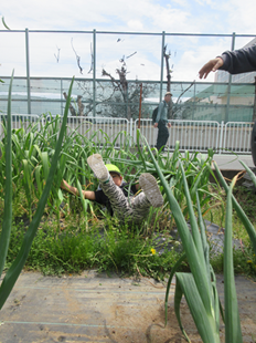 お隣のにんにく畑へスッポーン!