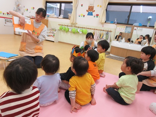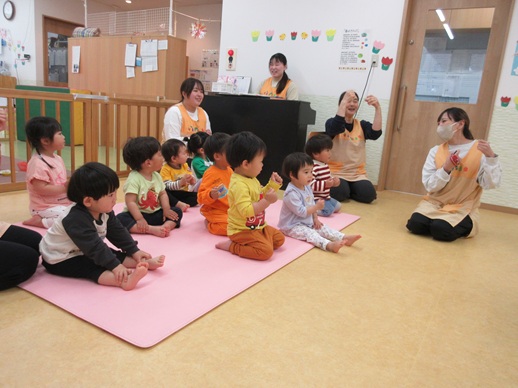 みんなが始まって、手遊び「はるですよ」🎶