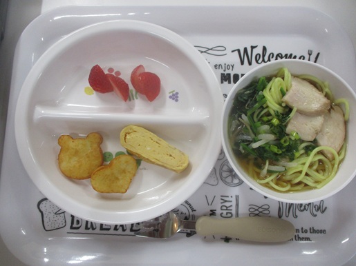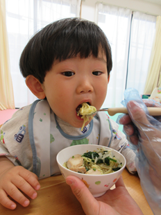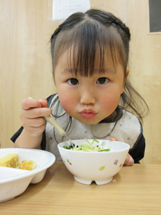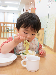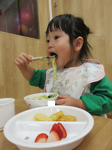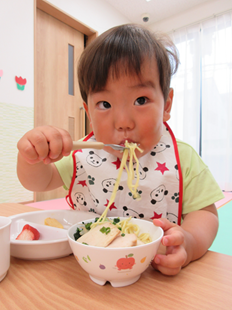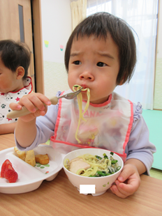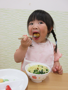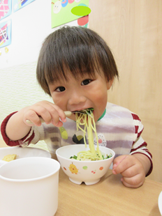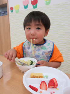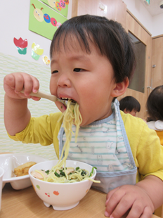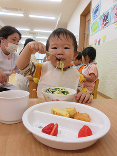 体を動かして遊んだ後は、お楽しみの給食♪