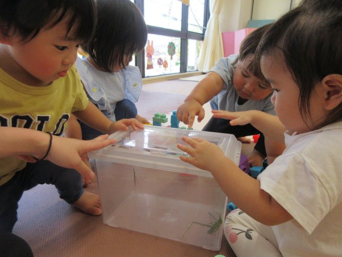 保育園に帰ると透明のケースに入れ替えて、みんなで観察。