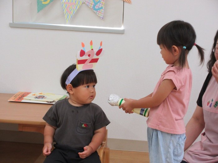 ドキドキしながらも、みんなにお祝いしてもらって、とっても嬉しそうです。