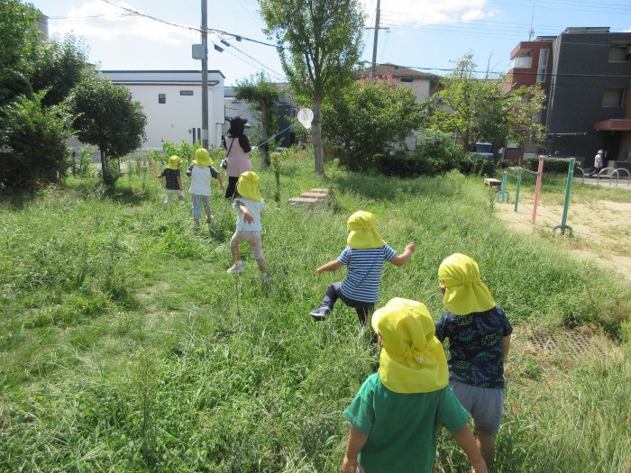 この日は大きな「トノサマバッタ」を見つけて大はしゃぎです。