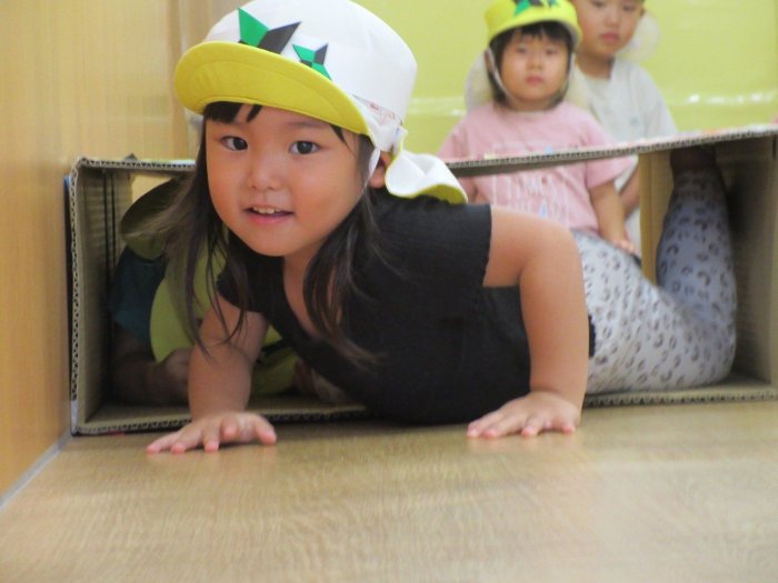 ほふく全身でトンネルをくぐったり、輪の中をジャンプしたり、バランスを取りながら進み、