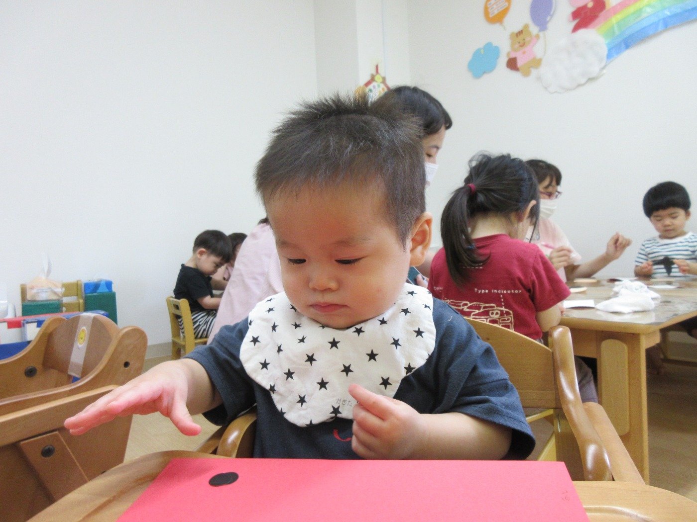 好奇心旺盛なひよこ組さんは、ずんずん紙の中央に!