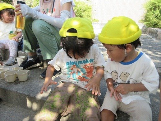 片栗粉のトロトロで感触を存分に楽しんだ日は、まだ水遊びをしていたんだものね。