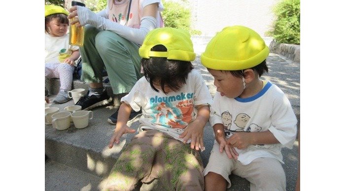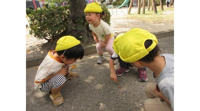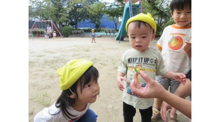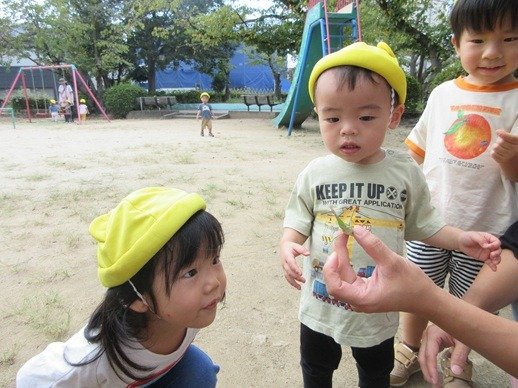 大きなバッタも見つけましたよ。お友達が捕まえると、自分も触ってみたい!捕まえてみたい!と、チャレンジの気持ちがムクムク湧いてくるようですよ。明日はどんな生き物に会えるかな?
