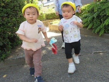 春にはまだ歩いていなかったお友達も、歩くのが楽しくって公園をトコトコ。たっぷり歩いて散策します。