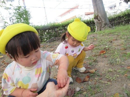 10月に入り、公園で遊ぶのにはちょうどよい季節になりました。公園につくとまずはお約束。