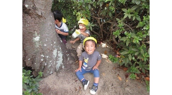 秘密基地みたいな木の間は、子どもたちにとってもワクワクする場所のようです。
