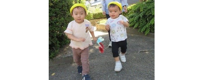 転んで泣いているお友達がいると「大丈夫?一緒に遊ぼうよ」と声をかけてくれて、涙を拭いて遊び始める様子が見られるようになったくま組さん。子どもたち同士のこんな会話に心がほっかほかになります。