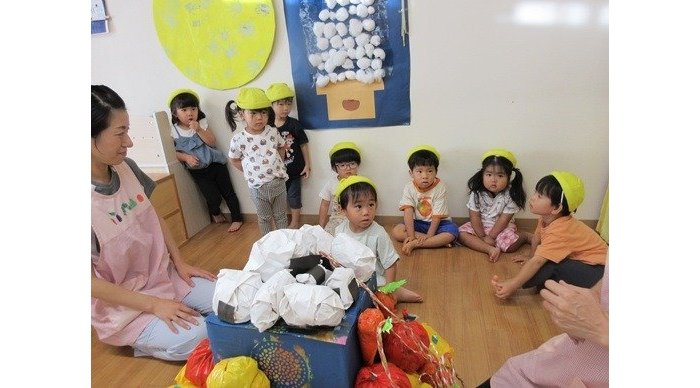 あきまつりは”ぐりとぐら”が公園に遠足にでかけて体操をしたり、見つけたおみこしをかついだり、おやつタイムをしたり。そんな流れを教えてくれる大切な時計さん。数日前から子どもたちとあきまつりを楽しみに過ごしていました。