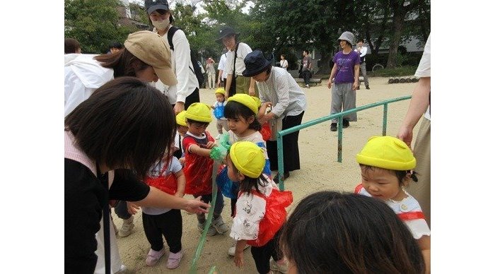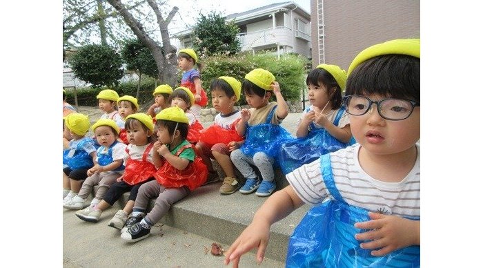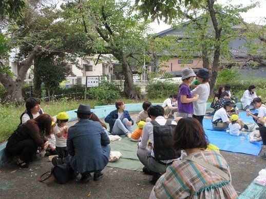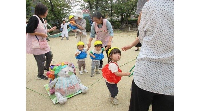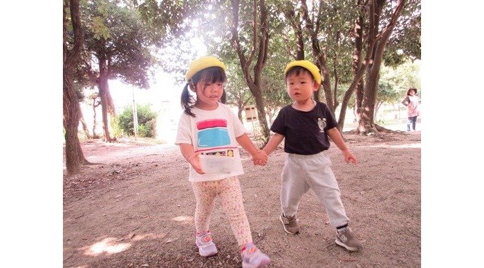 10月10日はあきまつりでした。お昼寝から起きた子どもたちはぐりとぐらに大変身。近くの公園まで”えんそく”に出発!