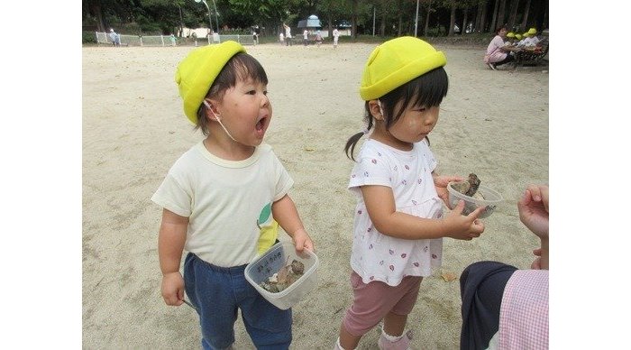 公園で待っていたひよこ組さんは、大きなお芋をみて不思議そうでしたよ。