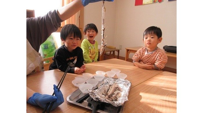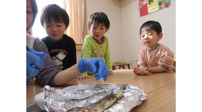 「もっと食べたい。おかわりちょうだーい」待ちきれないほどおいしかったようで、あっという間に2尾のサンマは子どもたちのおなかに。
