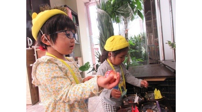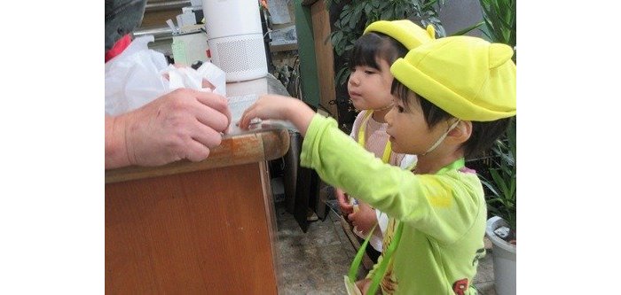 くま組さんはチューリップの球根を買いに、花屋さんに行きました。いつもお世話になっている、駅の北側にある花屋さんです。お財布にお金を入れて、好きな色を選んでそれぞれ1つずつ買いました。野菜の種と違って大きくてふしぎ。「きゅうこん」覚えましたよ。