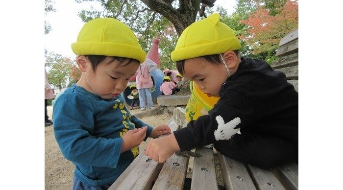 公園でも「これな~んだ」を見つけて遊ぶのが上手な子どもたち。繰り返し試しながら大きく育ってほしいです。