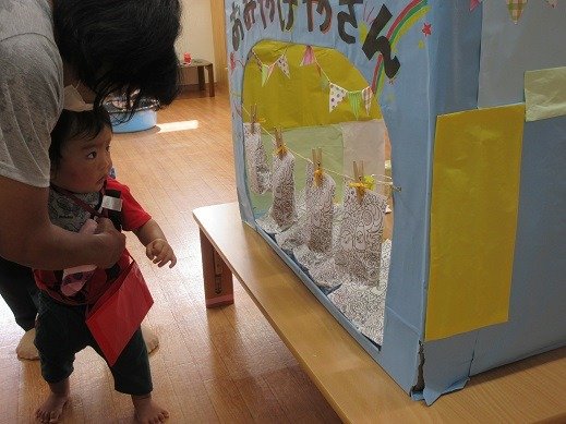 まず、くま組さんが、じっくり遊んでから、ひよこ・うさぎ組さんが後から参加できるようにしました。