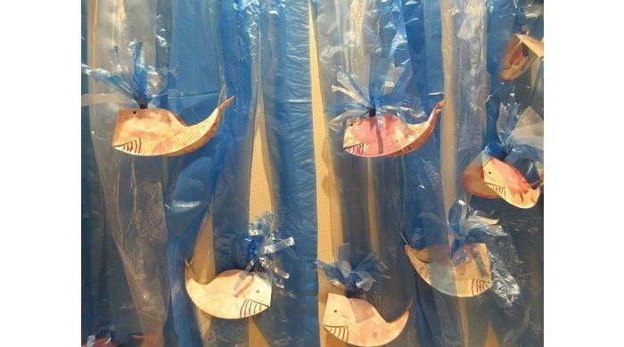 さかな釣りのコーナーも人気!水(ブルーシート)の中に入って、ワイルドな釣りを楽しむお友達や、