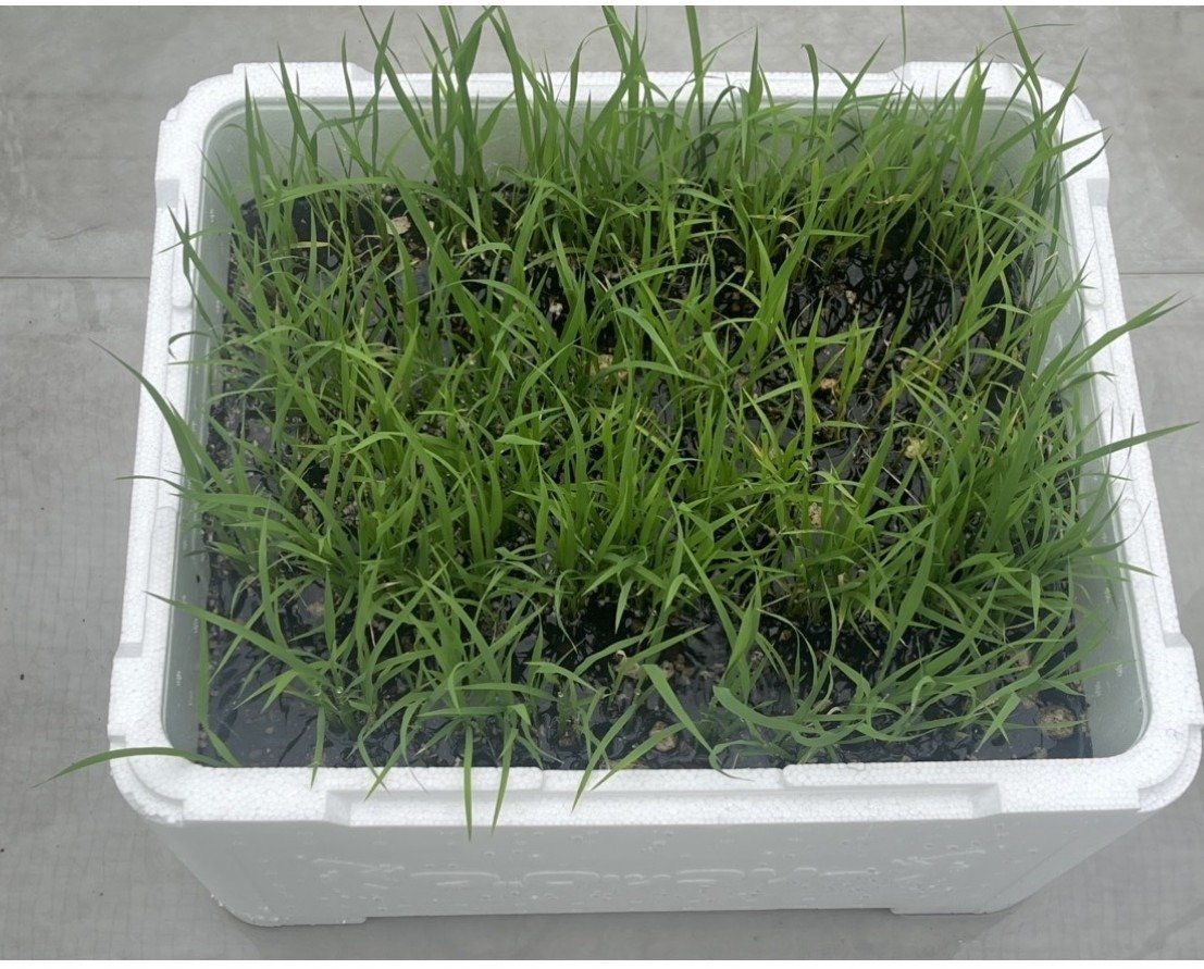 子どもたちはお米が大好きで、お給食でもモリモリ完食しています。そこで今年は発砲スチロールでお米作りにチャレンジしました。