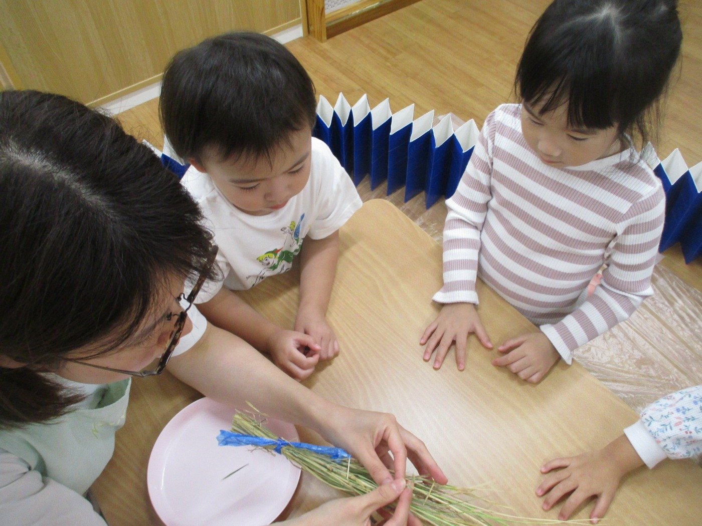 子どもたちとお水やりをしたり、日に日に大きくなり穂が色づき垂れはじめた稲穂をみて「おこめ?」「ごはんになるの??」と不思議そうな様子でした。