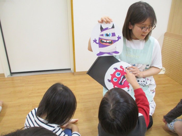 おひさま組では、ハロウィンが近づくと毎日モンスターが一体登場!保育者が用意したモンスター。モンスターの名前もなかなかユニークな名前が付けられていてね。