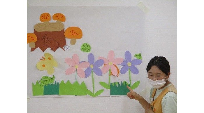 朝、保育者が壁にペタペタと